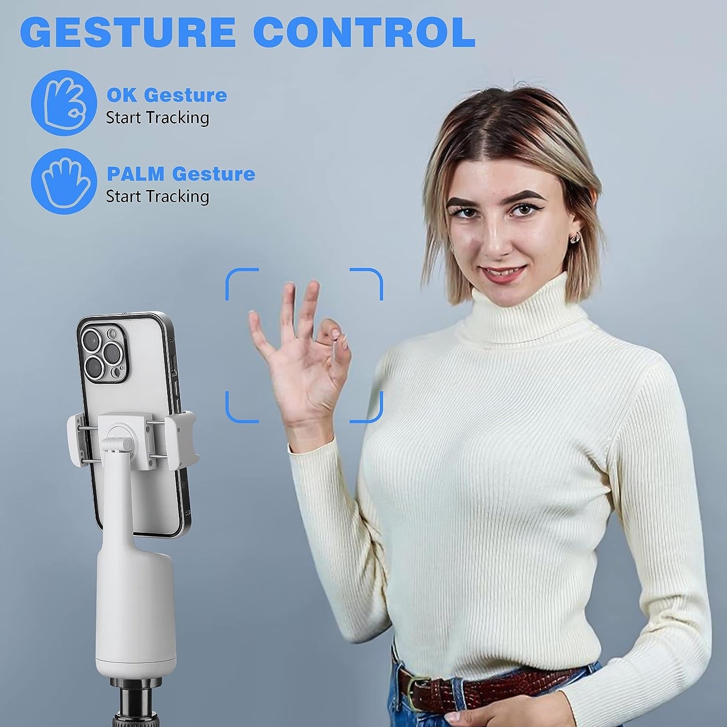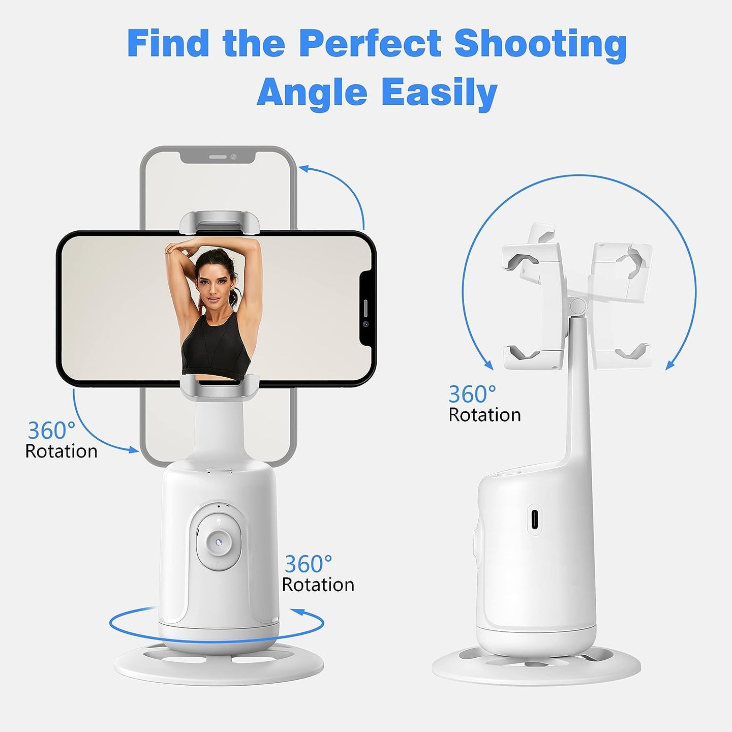 Capture stunning videos with the Auto Face Tracking Tripod 360°. This smart tripod employs an AI-powered face-tracking system and a 360° rotation for seamless recording. The highly-sensitive design follows and rotates with body movement, and its powerful chip provides smooth operation. Plus, double-clicking the power button activates an auto-rotation for hands-free shooting. No app needed – just set up and hit record.