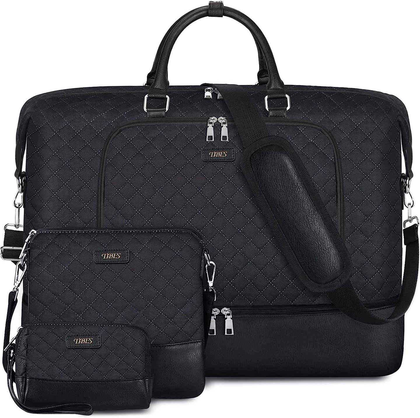 - Oversized Weekend Bag: Size: 21"L*9.5"W*16.5"H, can hold up to 17 inch laptop and clothes for 3-5 days of short trips. Larger than normal travel duffel bag, perfect size for weekend or 3-5 days daily travel). Shoe Compartment: 21"L*4"D*9.5"W, can fit up to 2 pair of shoes. Adjustable wide straps range: 25"-47".