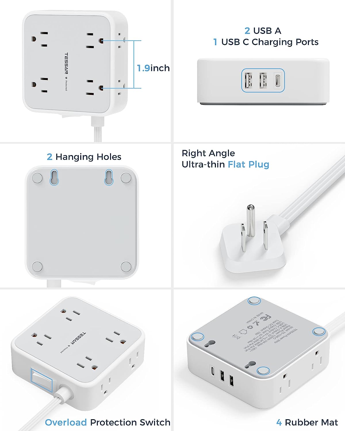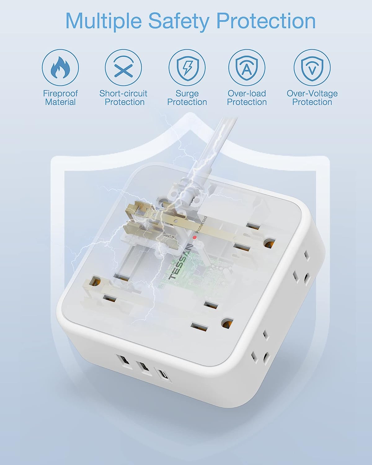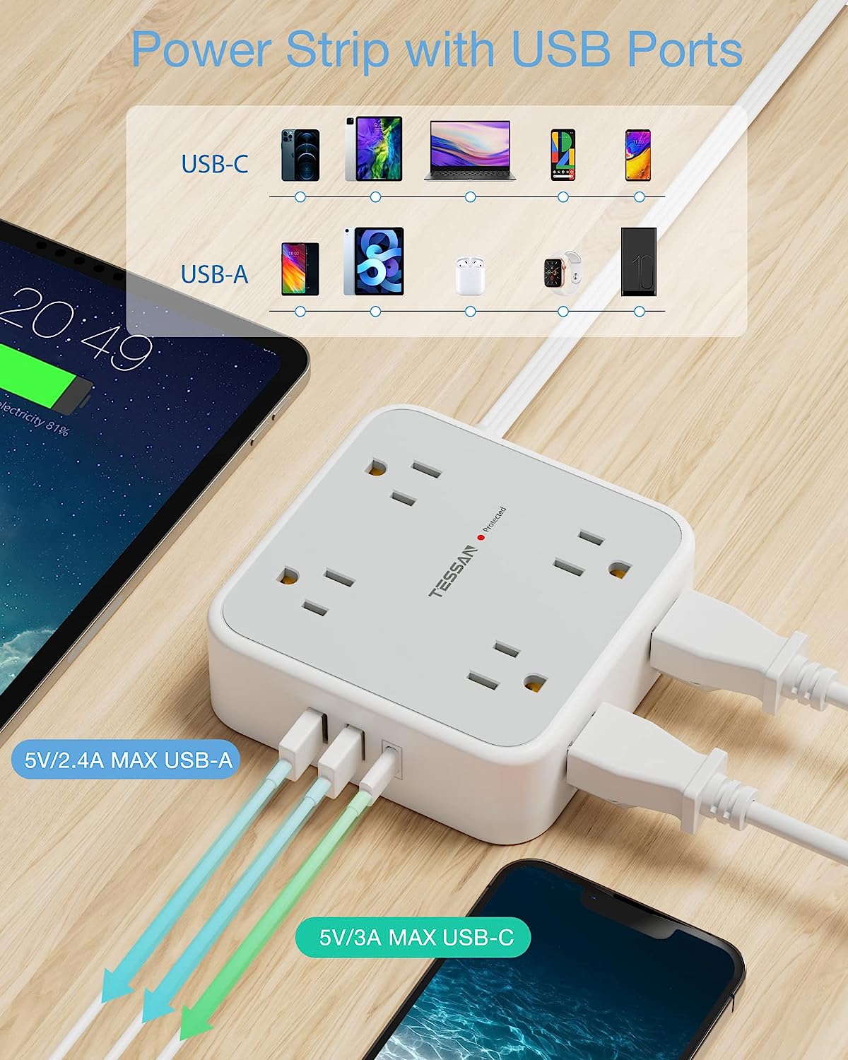 - Multiple Safety Protection: This power strip with USB C has surge protection (900J), overload protection, short-circuit protection, over-current protection, and so on. The on/ off switch can automatically shut off when the power exceeds rated value, to protect your expensive devices like computers, TV at home, office, college dorm, etc