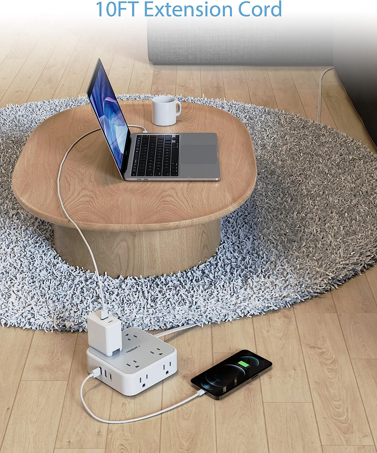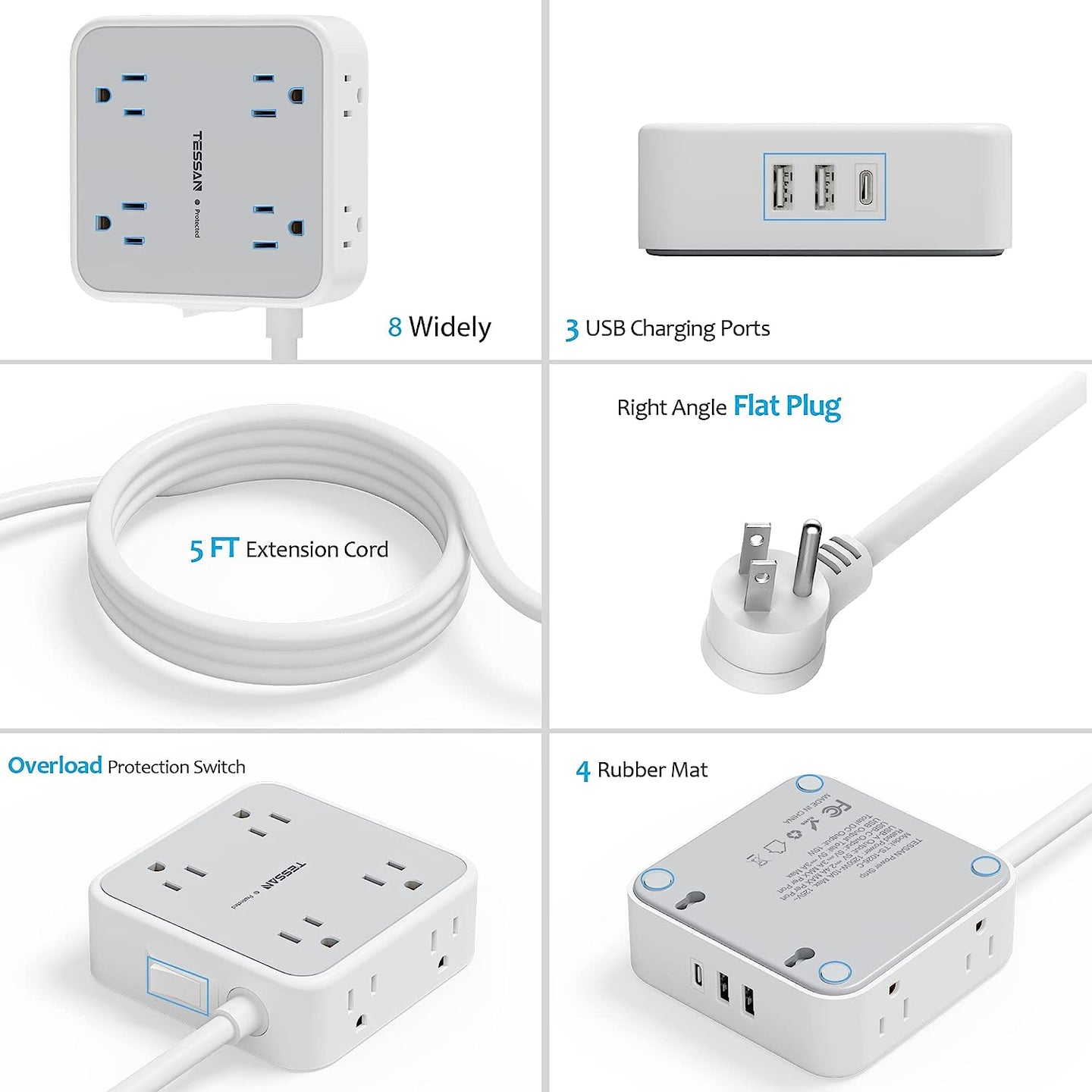 - 11 in 1 Power Strip with USB: Our power strip has multi plug outlets. Extension cord with multiple outlets turns 1 sockets into 8 outlets 3 USB, which could charge up to 11 devices at the same time. It would charge your cellphone, laptop, tablet, cameras without a variety of converters, save your space and make your desktop organized